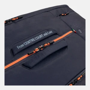 Die von Jannik Sinner inspirierte und mitgetragene PRO RACQUET BAG XL NV hat ein besonderes Design mit persönlichen Details, darunter ein orangefarbener Reißverschluss, der an die roten Haare des Italieners erinnert. Die hochwertige und geräumige Tasche, die Platz für bis zu 12 Schläger bietet, ist in Blau, der Nationalfarbe Italiens, gehalten und mit einer kleinen italienischen Flagge verziert. Für zusätzlichen Stil ist die Tasche mit dem persönlichen Logo des HEAD-Botschafters verziert, das aus einem „J“ für Jannik, einem „S“ für Sinner und einem Berg besteht, die zusammen wie ein Fuchs aussehen, seinem Spitznamen. Das Design enthält auch die Botschaft: „From Centre Court with love“ (Mit Liebe vom Centre Court). Im Inneren der Tasche ist das Netz mit kleinen Füchsen verziert.